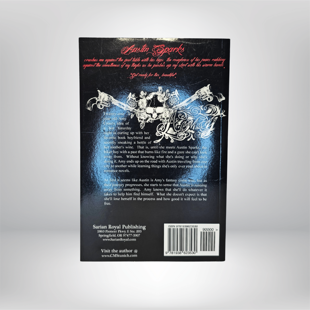 Twenty-one year old Amy Cross's idea of a hot Saturday night is curling up with her favorite book boyfriend and secretly sneaking a bottle of her mother's wine. That is, until she meets Austin Sparks, the biker boy with a past that burns like fire and a gaze she can't look away from. Without knowing what she's doing or why she's doing it, Amy ends up on the road with Austin traveling from one city to another while learning things she's only ever read about in romance novels.